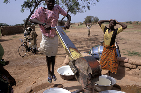A community pump in Burkina Faso built with individual donations to the donors were led to believe went to specific children in their membership materials. © Kevin Moloney, 1998