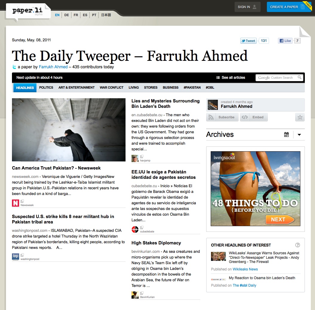 Keller’s column in the New York Times Magazine caught a fair share of criticism, arguing that his representation of the Post was unfair and that the Times aggregates content as well. But the brief and high-profile argument illustrated perfectly the uncomfortable relationship much legacy media has with the dynamics of the networked public sphere. Keller also noted in the same column that in the first hour after Hosni Mubarak’s resignation from the presidency of Egypt, traffic to the New York Times Website increased by one million page views. Keller does not reveal the statistics of how that traffic was fed by emailed stories, social networking and news aggregators, but one can assume they played a part in the traffic increase. Like the symbiotic relationship of celebrities and paparazzi, news producers and news aggregators may need each other. With the proliferation of sources of news, a publication can no longer depend on the saturation of its market to ensure it is the go-to news source.